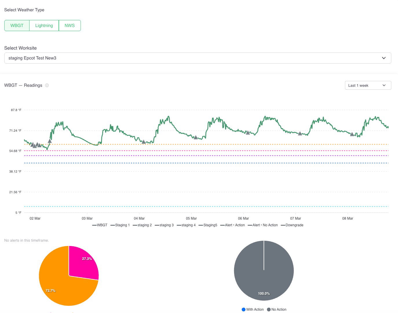 This report displays heat monitoring data across three sections. You can review heat event activity and assess how consistently your team is responding to WBGT alerts.