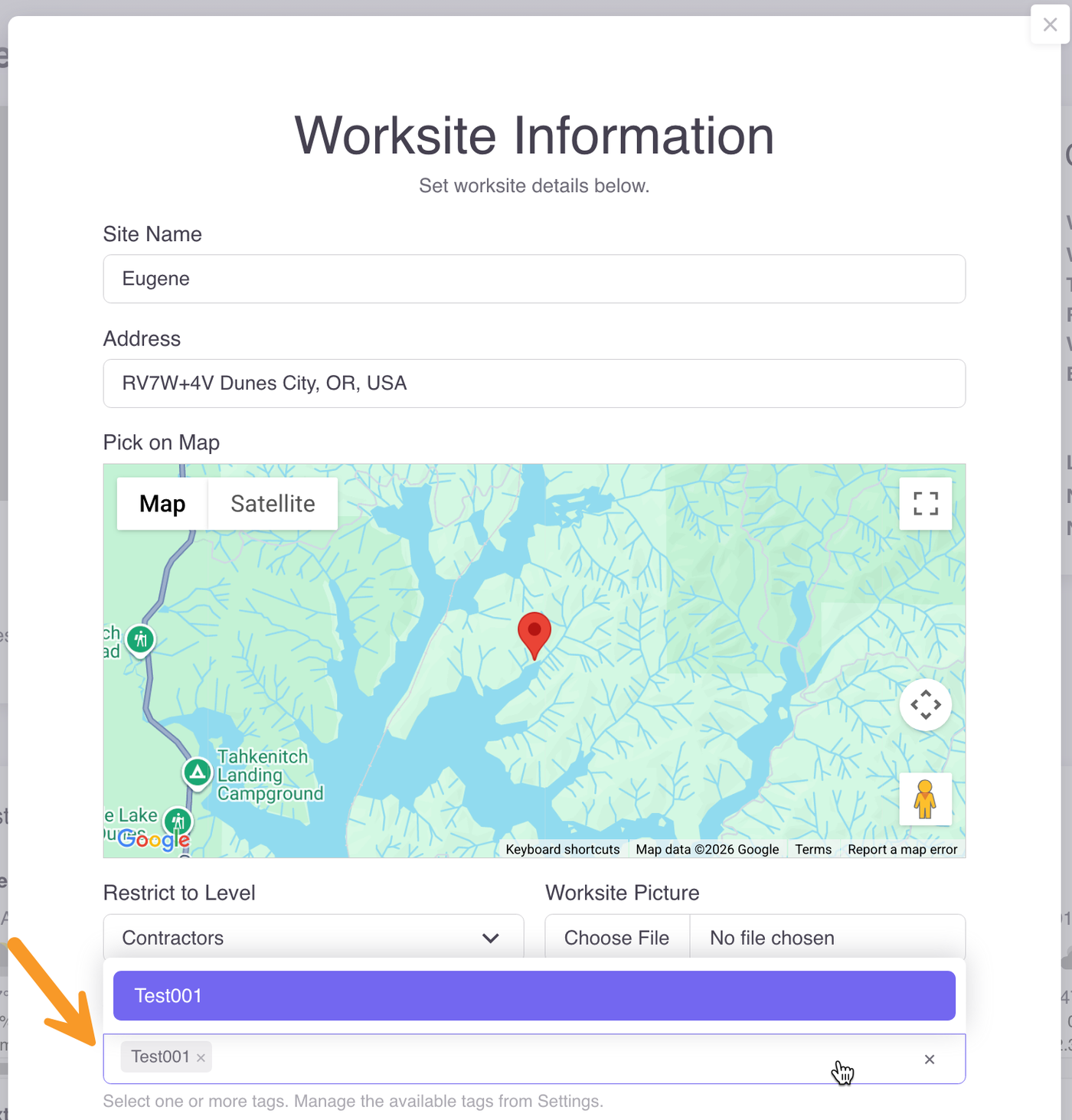 Assign a tag to a worksite